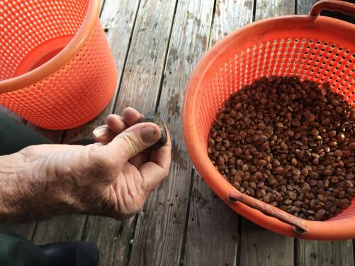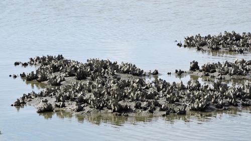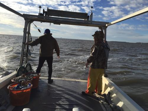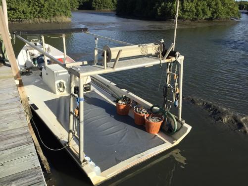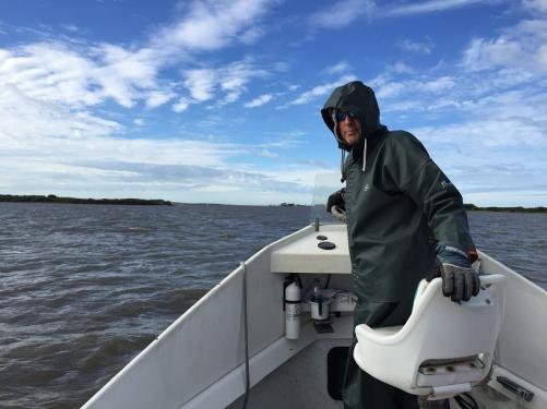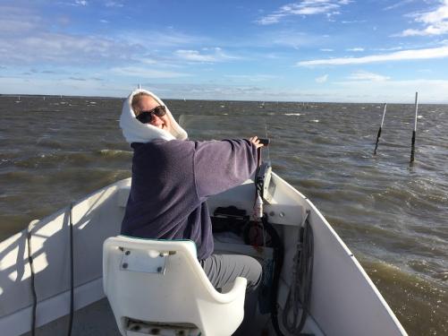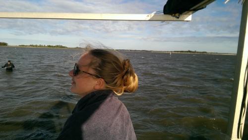Wir haben derweil von Captain Bobby viel über das Muschel-Züchten und Fangen gelernt. Die Muscheln werden als sogenannte Samen gekauft, also ganz kleine Muscheln, die dann in Netze mit ganz kleinen Löchern auf den Boden ins Meer gelegt werden. Die Buchten vor Cedar Key sind nicht tief, wie man auf den Bildern sehen kann, sind sie ungefähr hüfthoch mit Wasser gefüllt, wenn Ebbe ist.