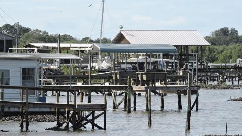 Das Boot lag im seichten Seitenarm. Man sah hier schon ganz gut, dass es wirklich sehr viel Schlick und Sumpf in Cedar Key gibt und dass größere Boote hier schwer durchkommen.