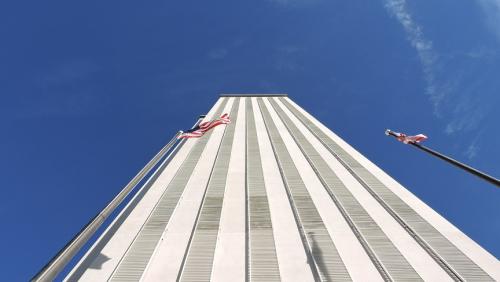 Das New Capitol Building ist 22 Etagen hoch und hat auf der 22. Etage eine rundherum gehende Aussichtsplattform für Touristen. Nachdem man wie beim Flughafen durch einen Sicherheitscheck gegangen ist und alles gescannt wurde, durften wir dann mit dem Fahrstuhl bis nach oben fahren. Da hier so gut wie keine Touristen herkommen, ist es umsonst und wir waren fast die einzigen Leute da oben.