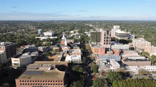 Der Blick über das sehr kleine Tallahassee (knapp 130.000 Einwohner) ist aber dennoch sehr schön. Das New Capitol Building ist auch das höchste, wenn nicht sogar das einzig hohe Gebäude in der Stadt, also kann man eigentlich alles überblicken.
