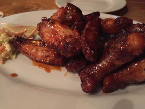 Als Vorspeise haben wir uns ein paar richtig gute Chicken Wings geteilt. Die waren rauchig, süß aber auch ziemlich scharf. Danach gab es, ganz fancy, heiße feuchte Tücher für die Hände. Guter Service.