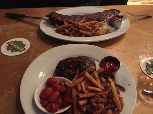 Hauptspeise: Sebi hat sich für Steak entschieden, ich habe Rippchen gegessen. Alles war wirklich richtig lecker und gut.