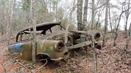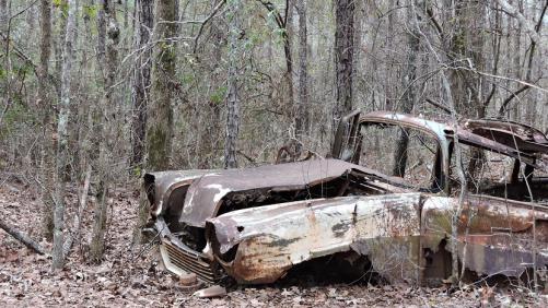 Aber dies sind von Park Rangern ausgeschlachtete Autos. Hier an dieser Stelle gab es mal eine kleine Siedlung, von der aber nichts mehr übrig ist, außer diese paar Autos. Da alle schadstoffverursachenden Teile ausgeschlachtet wurden, bieten die leeren Metall-Hüllen jetzt Unterschlupf für sämtliche Tiere, die sich da rein trauen. Da es lange nicht geregnet hat, gab es aber wohl keine unterschlupf-suchenden Tiere, so dass wir bis auf das übliche Krabbel-Getier nix gesehen haben.