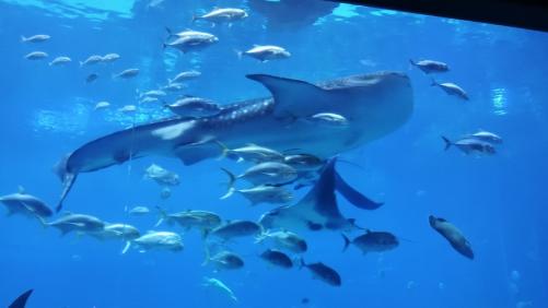 Besondere Attraktion waren die 2 weißen Beluga Wale und noch spannender ein riesiges Becken mit Walhaien. Leider war es nicht so leicht, die Aquarien gut zu knipsen, aber hier ein paar Bilder.