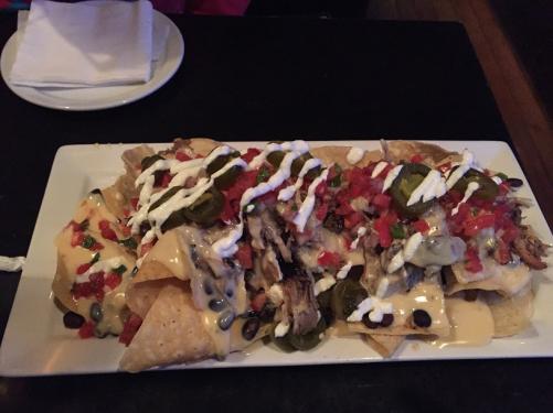 Im Anschluss ging es noch ein letztes Mal in eine American Sports Bar. Puh, wir sind immer noch satt, denn die Vorspeise war mega groß. Wir haben eine Portion Nachos mit Pulled Pork, Käse und Jalapenos geteilt, aber die Portion war massiv..