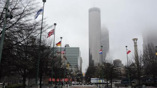 Heute war das Wetter das erste Mal schlecht. Die Wolken hingen tief und es hat immer mal wieder genieselt. Aber heute wollten wir ja eh nur Sachen drinnen machen, so dass es nicht wirklich schlimm war. So gibt es nur leider wenig Bilder von Atlanta, das haben wir auslassen müsssen.