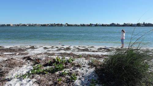 Auf der landinnengelegenen Seite der Insel, also auf der Seite, wo man rüber nach Saint Petersburg schaut, ist der Strand etwas naturbelassener, dafür hat man einen schönen Blick auf die Häuser gegenüber.