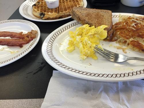 So langsam kam dann doch der Hunger auf und wir sind in eines der bekannten Fast Food Frühstücks Diner gefahren - das Waffle House. Hier gibt es alles, was das Amerikanische Herz begehrt, und alles trieft in Fett und Zucker. Aber, was soll man sagen, es war super lecker.