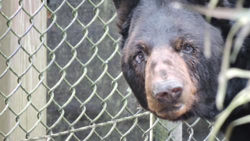 Auch zwei der hier lebenden Bären haben hier ein Zuhause gefunden. Der eine sah etwas schief aus im Gesicht..