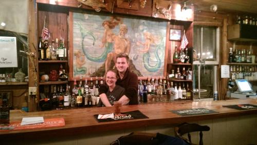 Natürlich waren wir als 'Deutsche' ein Highlight und wurden gleich geknipst. Dazu durften bzw mussten wir uns sogar hinter die Bar stelllen. Hier das Bild