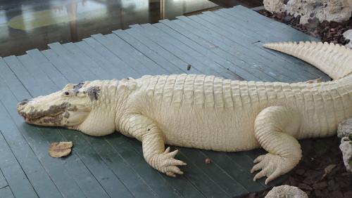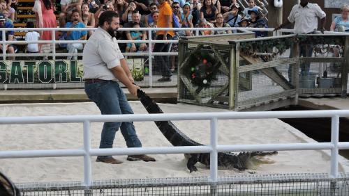Zu jedem guten Krokodilpark gehört auch eines – Gator-Wrestling. Eine solche Show wurde auch hier gezeigt, eigentlich ganz gut gemacht. Ausgebildete Trainer haben sich hier für die Zuschauer mit einigen Krokodilen gemessen. Es war schon spannend zu sehen, besonders als sie ein Krokodil auf den Rücken gedreht haben. Das Krokodil hat sich tatsächlich nicht mehr bewegt, es ist in eine Art Schockstarre gefallen und war wie tot.