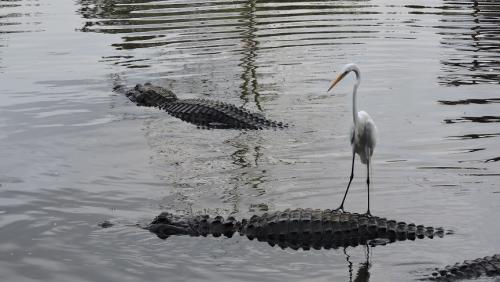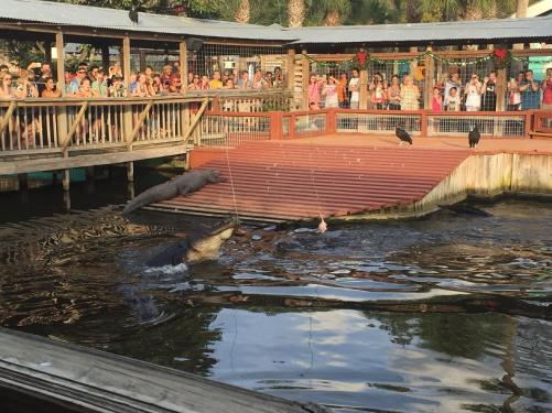 Highlight dieses Gatorland war die Raubtierfütterung, das sogenannte Gator Jumparoo. Besonders gespannt waren hier neben den Menschen wieder einmal die Vögel.
