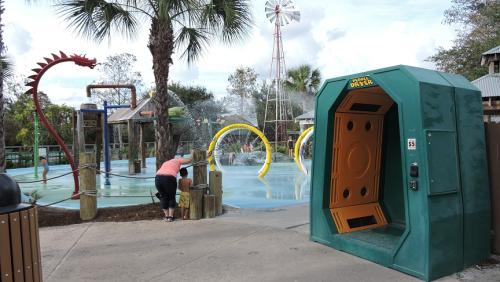 Für Kinder gab es, in der Hitze von Florida durchaus sinnvoll, eine Spielfläche mit verschiedenen Wasserspielen. Besonders witzig fanden wir hier einen Ganzkörperfön, ähnlich einer Autowaschanlage, in dem die Kids wieder trockengepustet werden konnten.