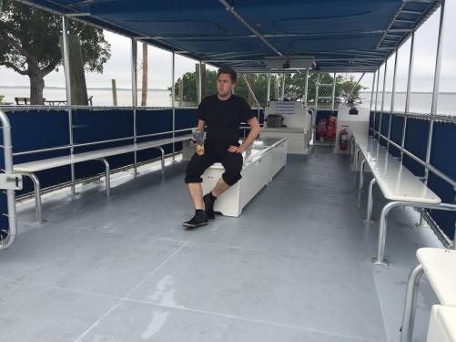 Der Camellia Street Grill lag richtig schön am Wasser. Es gab eine große Außenfläche mit einem Feuer und einer Bar und einen Terrassenbereich, der mit Gaze Schutz vor den vielen Moskitos birgt. Wir haben einen schönen Platz bekommen, wurden aber dennoch von den blutdurstigen Moskitos gebissen.