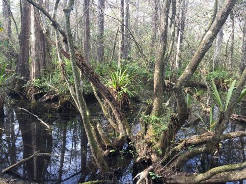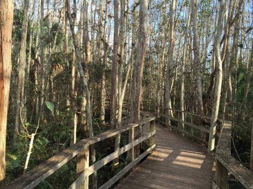 Der Corkscrew Swamp ist ein knapp 4 km langer Pfad aus Holz auf Stehlen, der sich durch einen Sumpf erstreckt. Hier ist man wieder weit weg von der Zivilisation und kann in Ruhe die vielen Tiere in freier Wildbahn erleben, wenn man sich denn ruhig verhält. Das Wetter war spitze, die Sonne schien und es war erneut sehr warm. Auch sonst war fast niemand auf dem Pfad unterwegs, denn 4 km am Stück laufen ist für einen Amerikaner schon eine unerträgliche Zumutung.